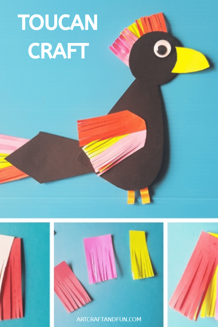 - Print out the Toucan Craft Template. Cut out the head, beak, body and tail of the Toucan. Also cut out the rectangle piece.