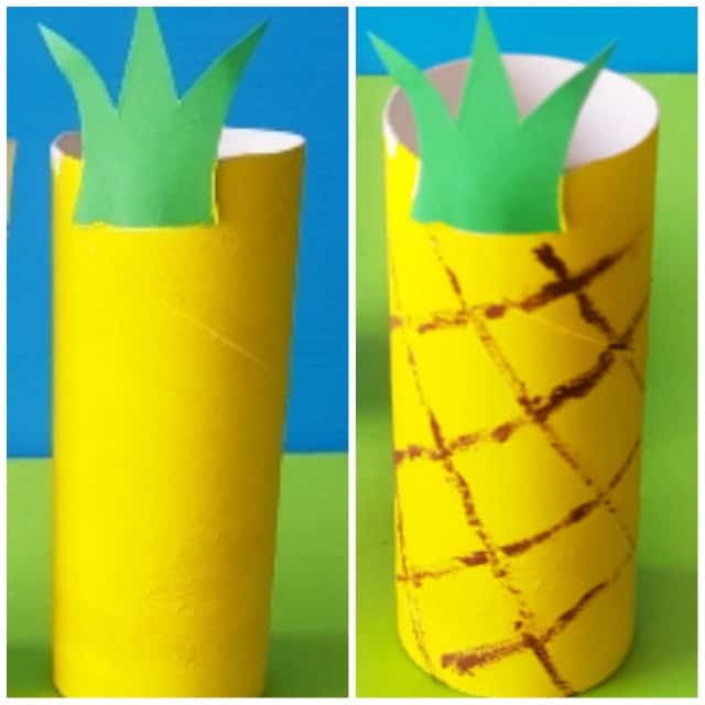 Now this is a very easy Paper Roll Craft to make. You can even incorporate this in a classroom setting, or make it with your little kids at home. And while you are working on it you can easily talk about goodness of fruits. Maybe even keep a plate of fruit right next to your child for some motivation as well.