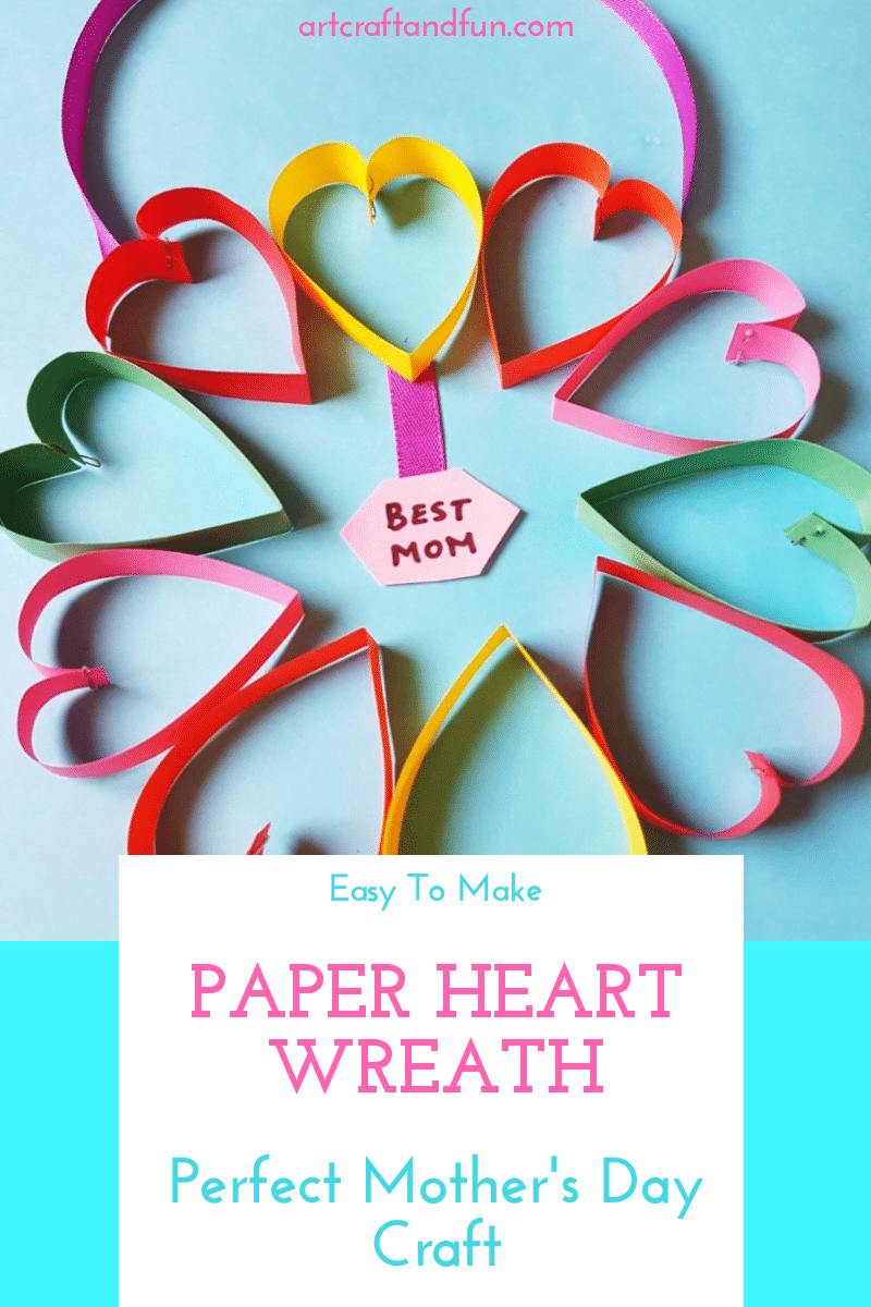 It turned out so colorful and cheery. I loved the colorful hearts and it was such a fun activity to do with my daughter. She loved making these easy hearts out of colorful paper strips. All we needed for this paper hearts wreath was colorful paper and stapler and some ribbon. It was easy peasy lemon squeezy!!!