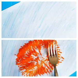 2. Take out paint in a small dish. Dip your fork in the paint and start painting with it! How much easier and fun can it get!!!!! Your aim is to try to make a circle.